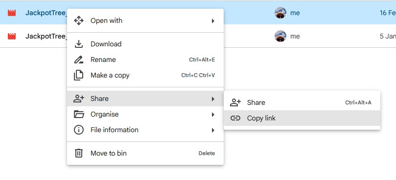 Copy the link of the video with right click option
